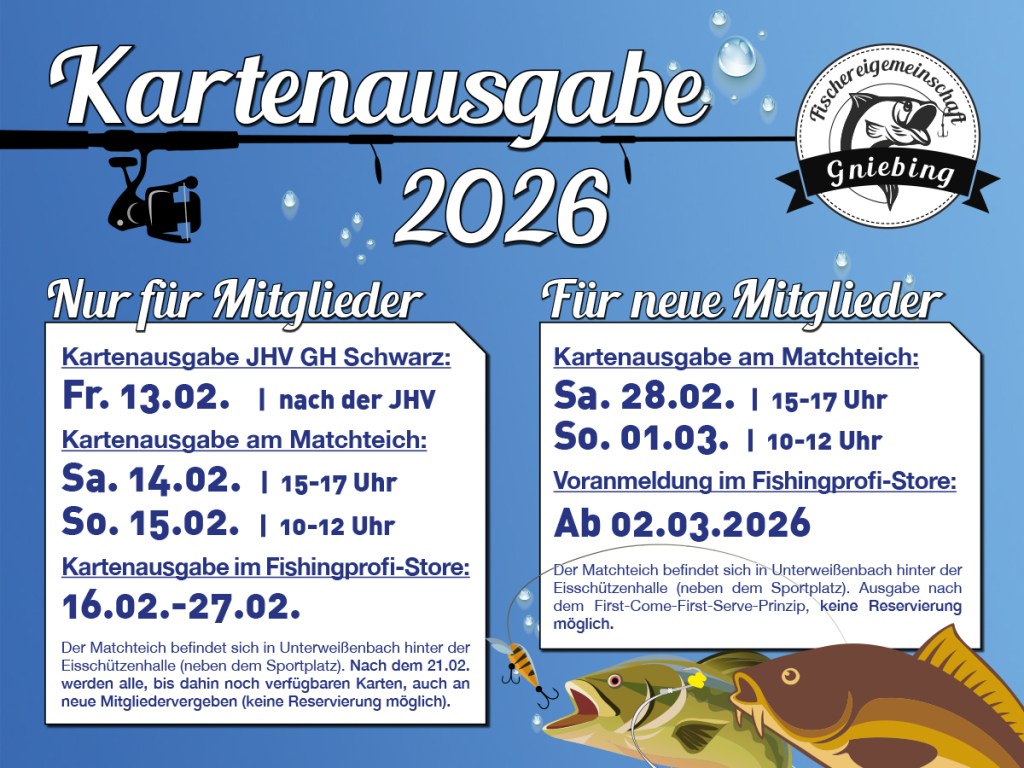 Für die Gniebinger-Raab können ausschließlich Jahreslizenzen gelöst werden. Für den Matchteich werden Tages- und Saisonkarten ausgegeben.